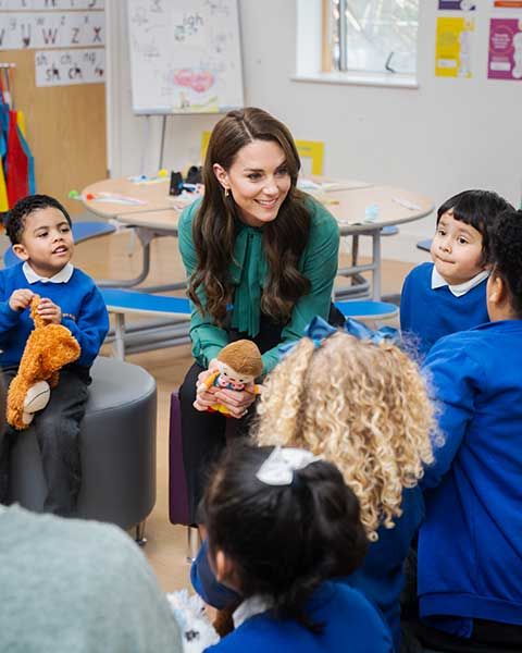 Mum-of-three Kate, who is a natural when it comes to interacting with children, can be seen winning the children over as she asks them about their teddy bears, including one called Barnaby, before admitting she wished she had brought her teddy with her too.